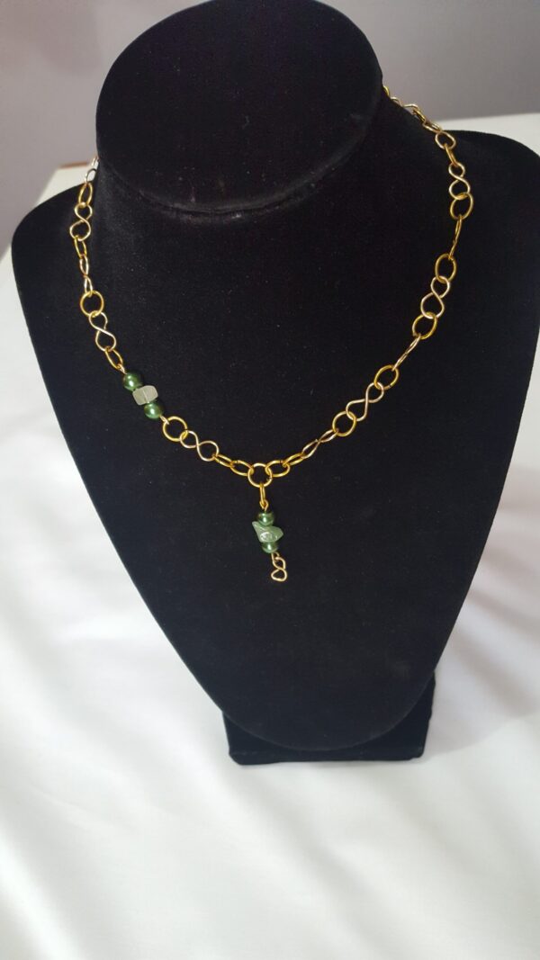A Handmade Necklace Set with Green Ornamental Pearls and Green-Stones
