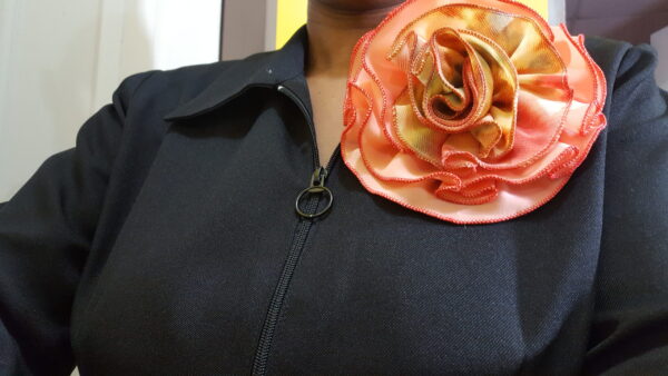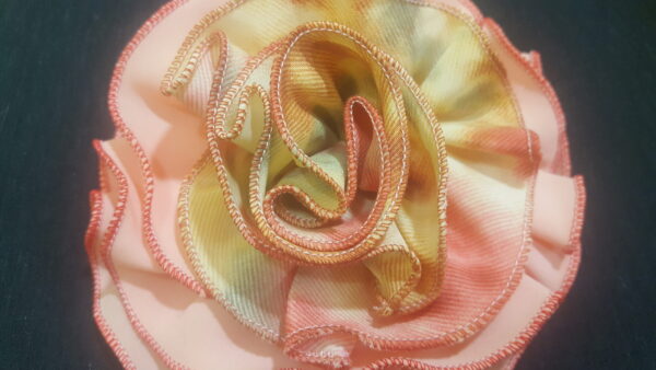 Abstract Tie-dyed and Peach Rosette. Broach pin to the back. Just as in the photo accessorize your outfit and add to your style and swag.