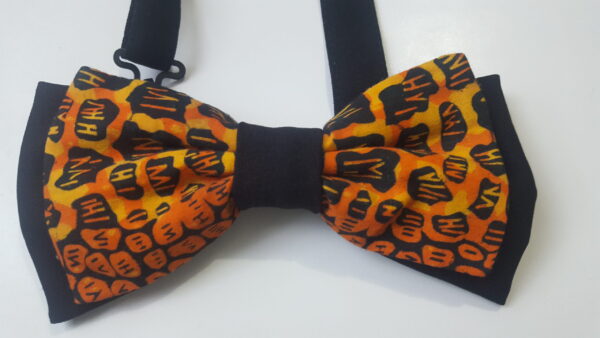 Adjustable African Print Bow-Tie (Black, Orange and Yellow)