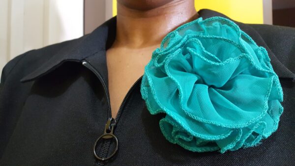 Aquamarine and Tan Drawstring Bucket Bag. Ideal for carrying your phone, key covers, lady essentials, and more. The bag comes with a free rosette that you can use to style up the bag or you can wear it on your favorite outfit. One free gift that you can use in multiple ways.