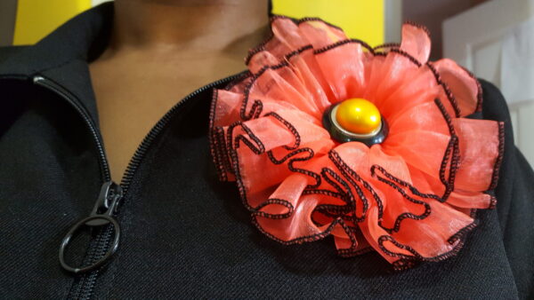 Black and Orange Rosette . Broach pin to the back. Just as in the photo accessorize your outfit and add to your style and swag.