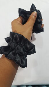Scrunchies can be worn on your wrist as seen in the photo. It looks so cool.