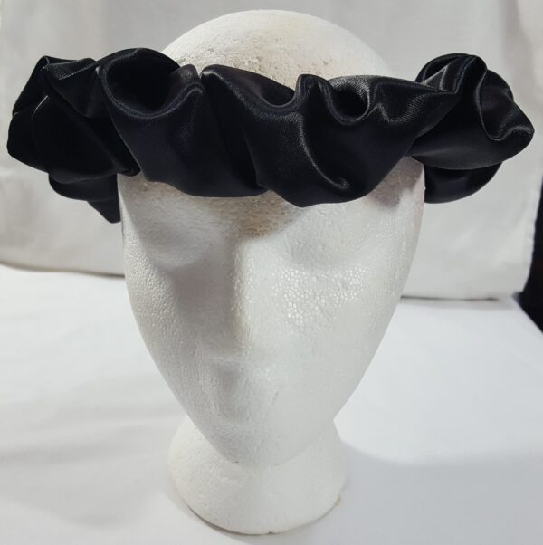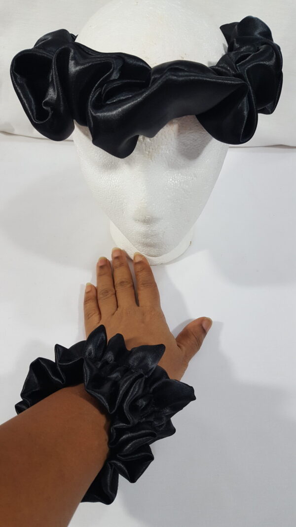 - Decorative gathers on both headband and scrunchie