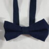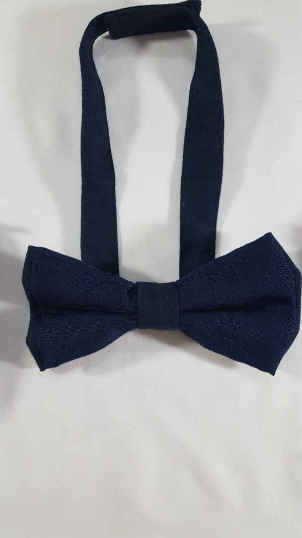 • One Navy-Blue Bow-tie 3 inches by 6 inches – Fabric adjustable strap to fit neck 17 inches with Velcro closure