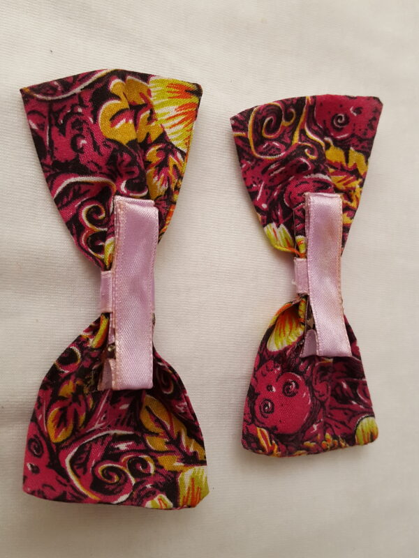 African Print Burgundy Patterned Hair Bows (Two). Adds That Elegance To Your Hair. Use Our Hair Bows And Rosettes To Add Your Own Personal Style.