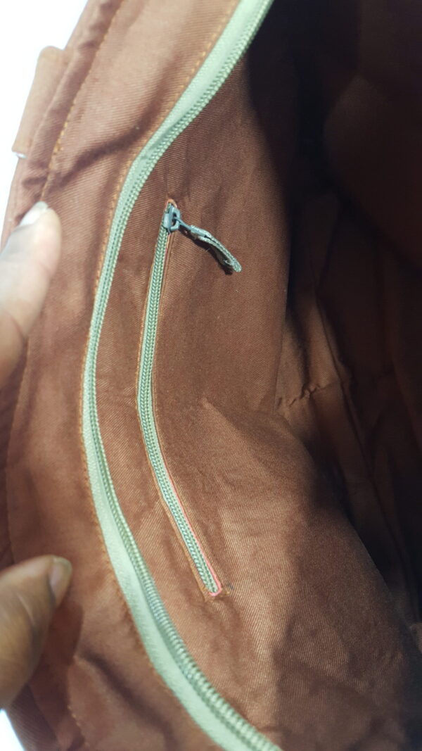 • Main compartment – 16 inches wide, 13 inches long. The bag has a zippered closure.