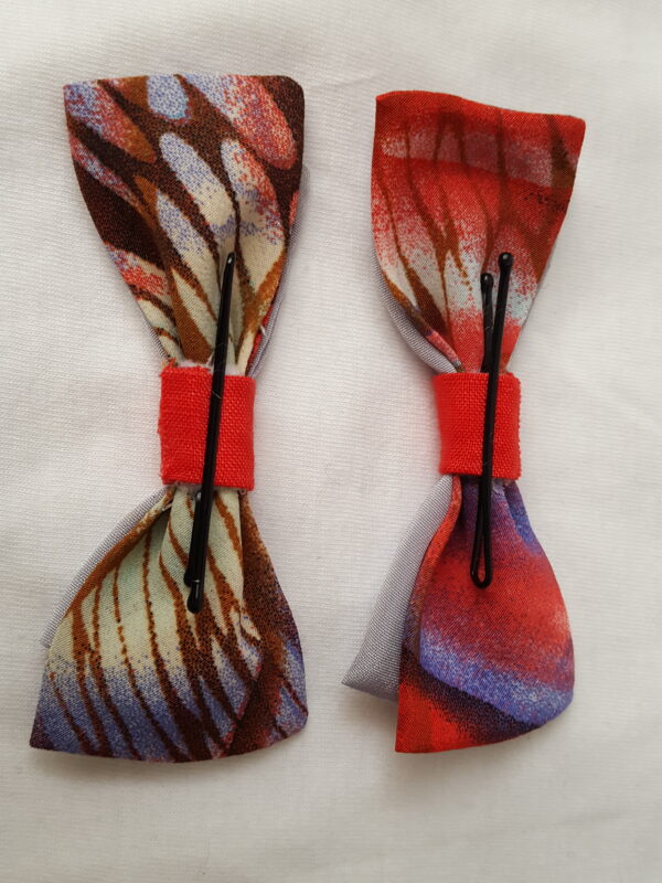 Grey and Red Satin Hair Bows (Two). Adds That Elegance To Your Hair. Use Our Hair Bows And Rosettes To Add Your Own Personal Style.