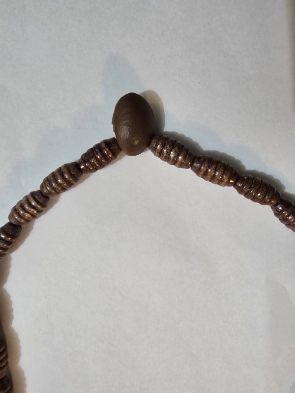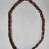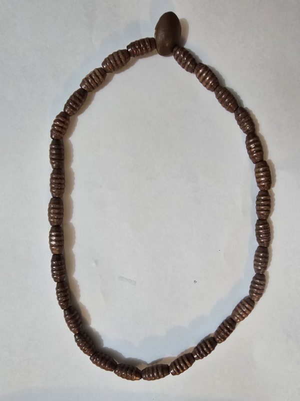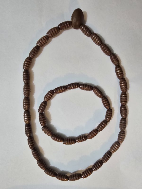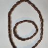 Make a statement wearing this dark brown matching necklace and wristband. You just love the natural, elegant look. The necklace has a natural seed pendant and elastic cord. Feel for a change from the sparkly accessories. Step out in this handmade beaded design.