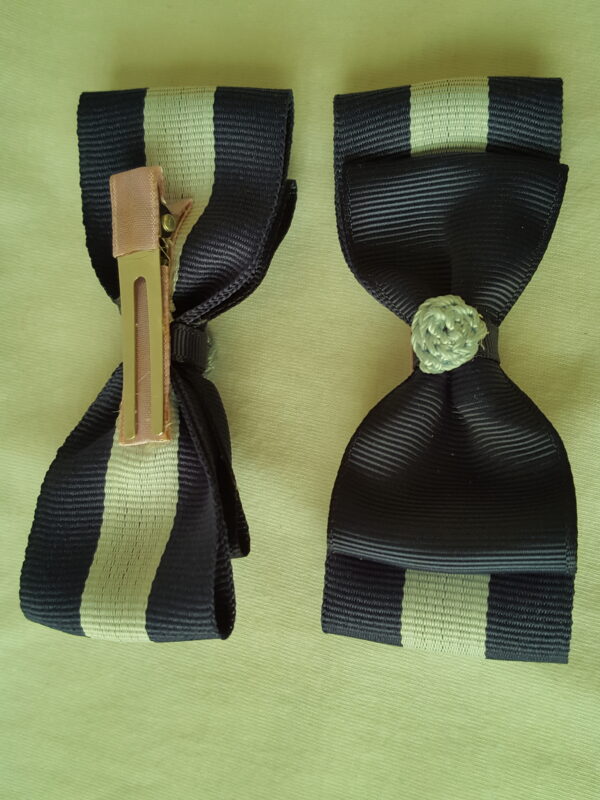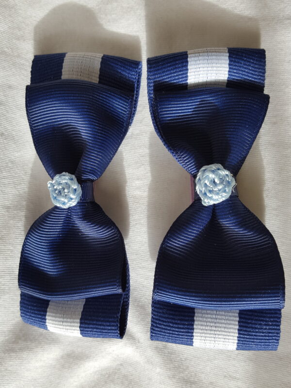 Navy-Blue and White Stripe Hair Bow (With Crochet Center).  Adds That Elegance To Your Hair. Use Our Hair Bows And Rosettes To Add Your Own Personal Style.