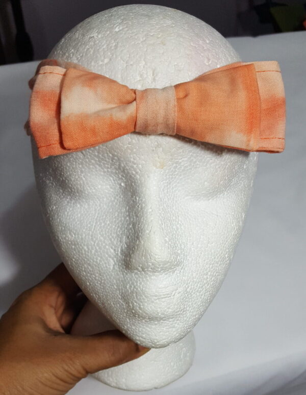 Want to enhance your hairdo? Add a finishing touch to your already dressed up hairstyle with this Orange and White Tie-dye Headband. Casual, semi-casual or even formal wear this headband helps you step out in style. Very comfortable the elastic ensure that it fits not to tight on your head no matter your head size.