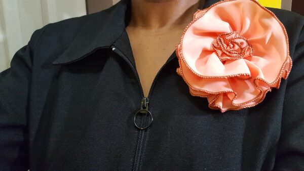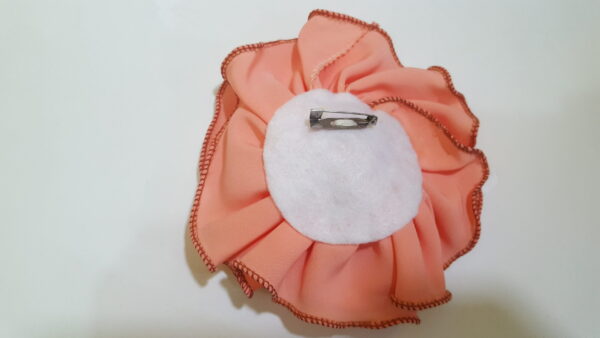 Peach Rosette With Dark Brown Edging. Broach pin to the back. Just as in the photo accessorize your outfit and add to your style and swag.