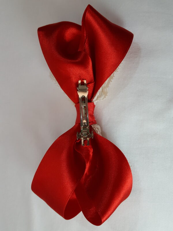 Red Hair Bow trimmed with Off White Lace