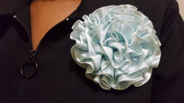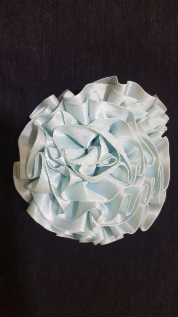 Sky-Blue Colored Rosette. Broach pin to the back. Just as in the photo accessorize your outfit and add to your style and swag.