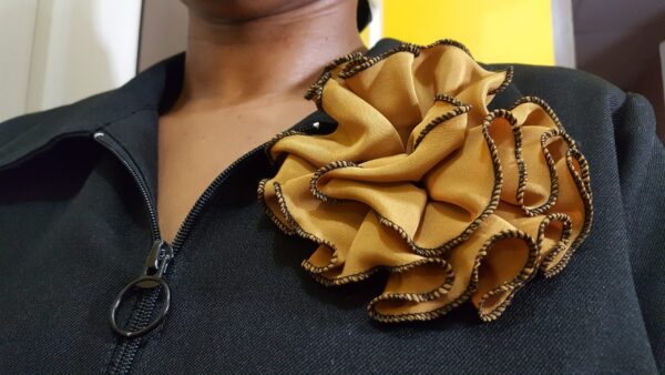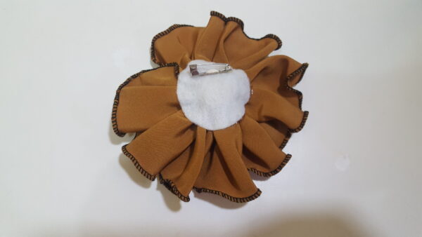 Light Brown Rosette Broach With Dark Brown Edge Thread Trimming. Broach pin to the back. Just as in the photo accessorize your outfit and add to your style and swag.
