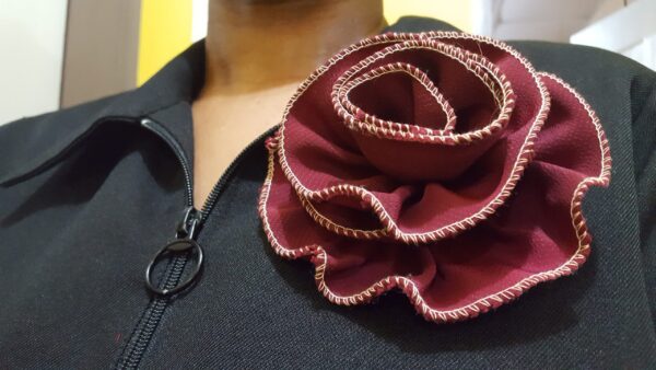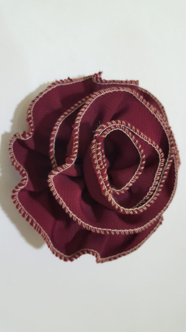 Soft Satin Rosette Broach – (Burgundy) with a broach pin to the back. Just as in the photo accessorize your outfit and add to your style and swag.