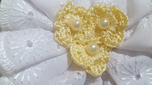 • Color: White, with Yellow Crochet Center