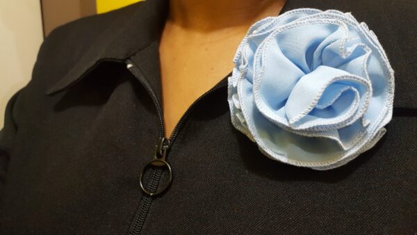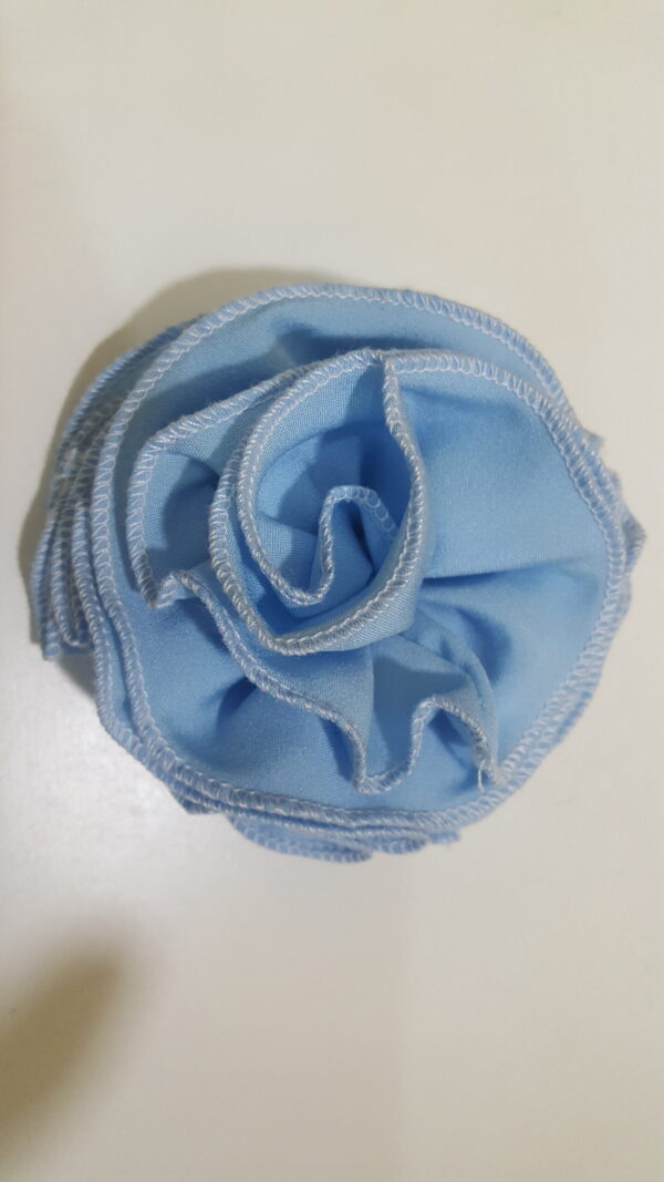 Sky-blue Rosette Broach With White Thread Trimming. Broach pin to the back. Just as in the photo accessorize your outfit and add to your style and swag.