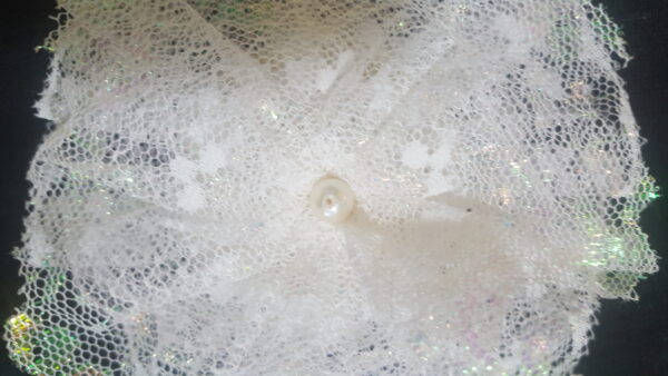 White Lace Rosette Broach With Decorative Pearl and Glitter